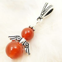 Elspirias Angebot beinhaltet handgefertigte Schmuckstücke aus über 35 unterschiedlichen Steinsorten. Die Schutzengel-Kettenanhänger gestalten das Kernangebot, das aber ständig