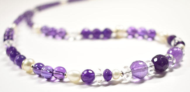 Edelstein-Ketten zu gestalten macht mir sehr viel Spaß, weil ich mich kreativ gut austoben darf. Über die Jahre haben Steinperlen aus über 50 unterschiedlichen Steinsorten mit jeweils mehreren Formen und Größen den Weg zu meiner Werkstatt gefunden. Somit habe ich eine breite "Palette", die viele Möglichkeiten anbietet und Wünsche erfüllen kann.